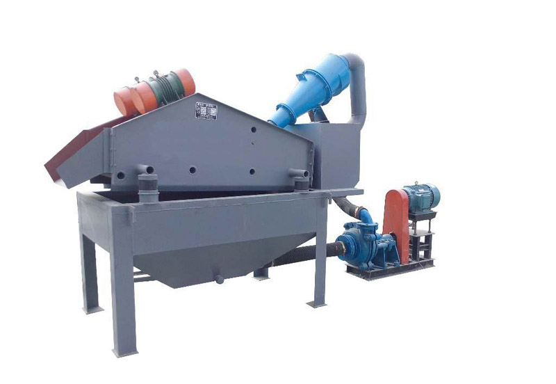 细沙回收机由洗料槽、砂浆泵、电机、旋流器、直线振动筛、回料箱等组成。工作时砂浆泵、水泥混合物输送至旋流器,通过旋流器离心分级,